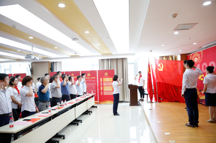 活動第一項,全體員工一同奏唱國歌,這一中國人心中最激昂的旋律,穿越時空,延續著我們中華民族的偉大傳統,凝聚著新中國的豪情壯志。接著,全體黨員共同重溫入黨誓詞,不忘初心,牢記使命。