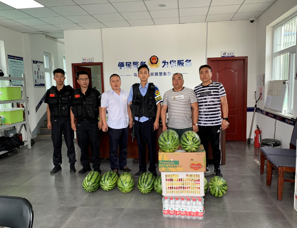 民警心連心,警民一家親,集團公司代表一行人還對高鐵片區警務站進行了慰問,為他們帶去了水果,礦泉水等慰問品,對他們默默無聞、無私奉獻的精神致以崇高敬意。