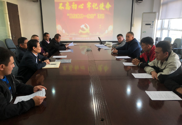 結合“不忘初心、牢記使命”主題教育,為進一步深入開展“民族團結一家親”活動,11月4日下午,庫爾勒銀泉供水有限公司黨支部開展“民族團結一家親”活動。