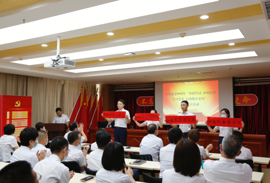 7月1日,根據(jù)集團公司黨委安排,集團機關黨支部組織全體黨員及總部職工開展慶祝建黨99周年“重溫誓詞、齊唱紅歌、學習黨史、弘揚優(yōu)良家風”主題黨日活動。