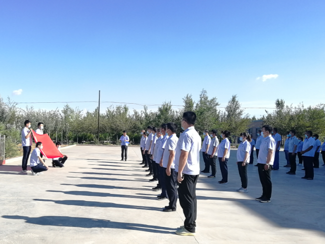 公司在職黨員和干部職工按照防疫要求佩戴口罩、間隔有序地在職工文體活動中心升旗廣場參加升旗儀式,隨后全體黨員在黨總支書記楊杰成同志的領(lǐng)誓下,面對黨旗重溫入黨誓詞,大家緊握右拳,莊嚴宣誓,追憶初心,反思使命,表達自己的決心與信念。
