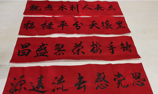 活動第一項,通過書法展示、掛黨旗、國旗,抒發建源公司對黨、對集團的美好祝愿。